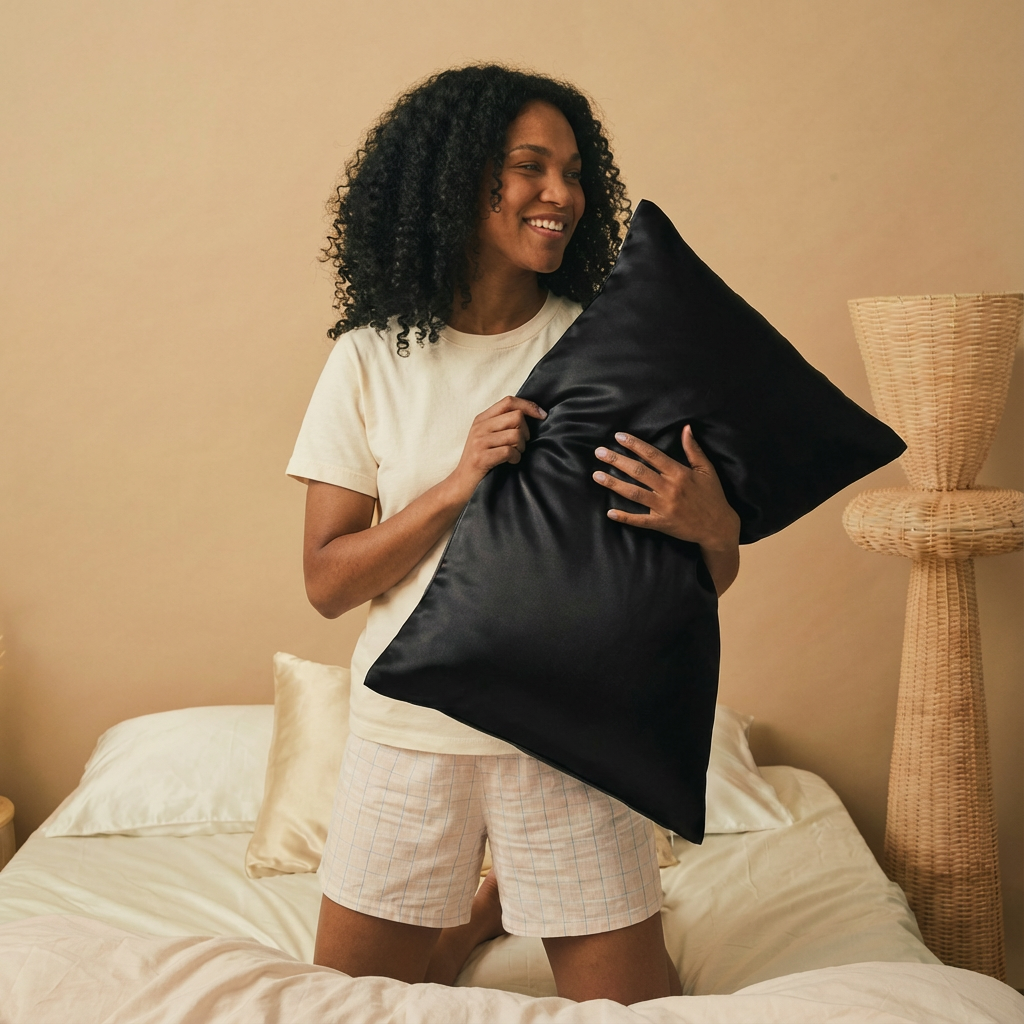 3 x plus douce que le coton, la taie d'oreiller en soie préserve la fibre capillaire. Ils sont donc plus brillants et moins cassants. Elle limite la casse, les frisottis et les nœuds au réveil !